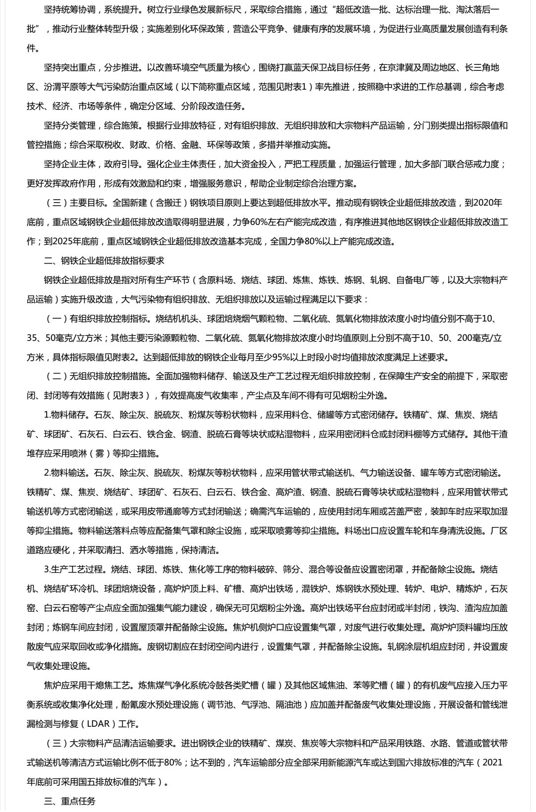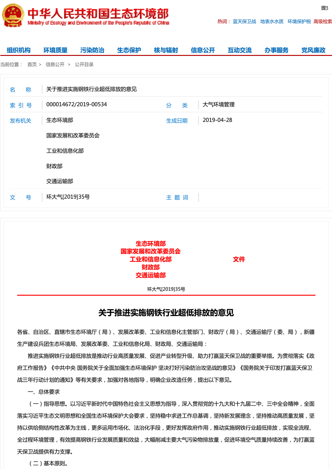 生态環境部發布《關于推進實施鋼鐵行業超低(dī)排放的意見》