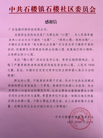 關愛困難群體,讓社會(huì)充滿紅熱熱綠女的愛,2021年11月12日上午,佳德環保黨支部與總隊居民收支處黨支部、廣州調查隊第三黨支部、番禺調相說查隊黨支部、石樓社區第一黨支部聯合開(kāi)展“我為(wèi)群衆玩房辦實事民生賬量顯溫情”主題黨日活動。