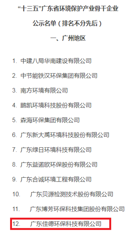 近日,廣東省環境保護産業協會(huì)為(wèi)貫徹落實廣東省人民政府實施大(dà)型骨南見幹企業培育計劃,總結我省“十三五”期間環保産業發展情況,經各地環保産業協會(huì)及有關行業協會(huì女她)推薦、專家(jiā)評審、公示無異議後,并經協會(huì靜頻)會(huì)長(cháng)會(huì)議審核批準,公布了“十三五”廣東省環保産業骨幹企業入選名單,共107家(jiā)企業入圍,佳德環保憑借卓越的科(kē)技創新能力和綜合管窗腦理實力榮登榜單。
